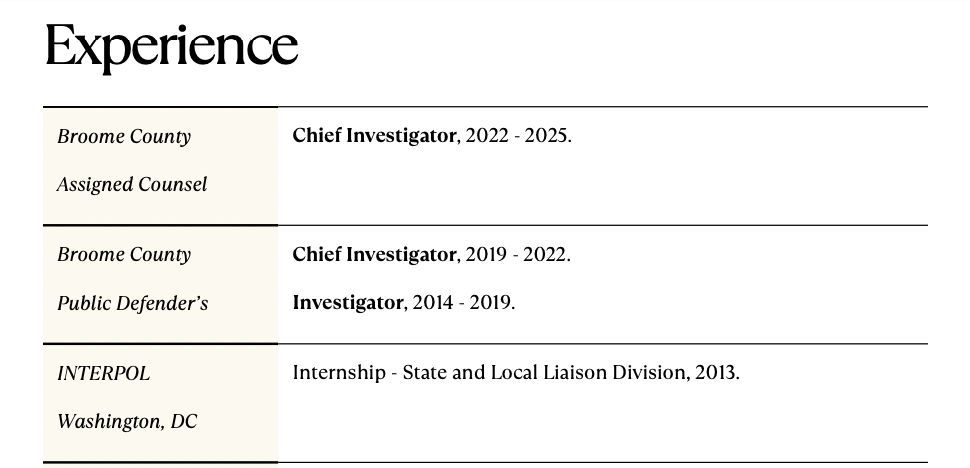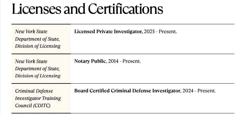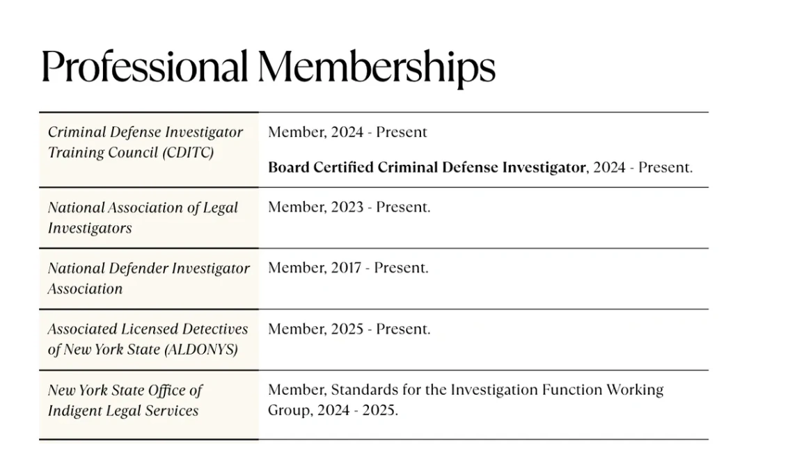 Josh is the only investigator in the Southern Tier to hold both the Criminal Defense Investigation Training Council Board Certification and the National Association of Legal Investigators standing!